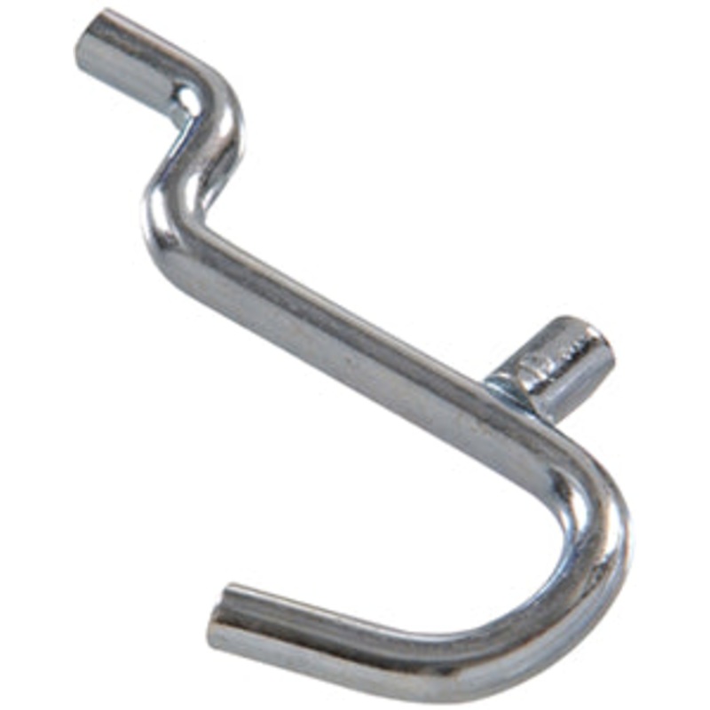 For 1/4 pegboard. Size 0.207. Zinc plated finish. Curved hook.