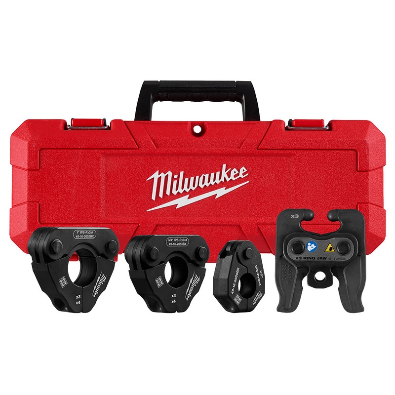 The MILWAUKEE 1/2" 1 IPS-P Pivoting Press Ring Kit is designed for use with the M12 FORCE LOGIC Press Tool on Viega MegaPress, Apollo PowerPress and other press fitting systems. The IPS-P Pivoting Press Ring Kit is a more efficient alternative to welding a