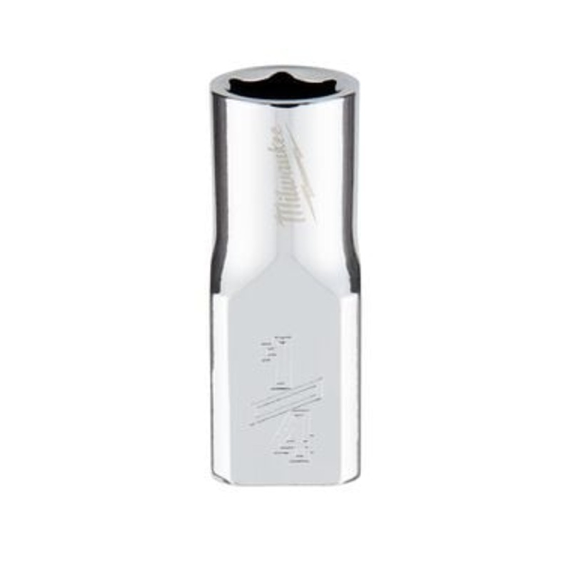 The Milwaukee 1/4 in. drive 1/4 in. SAE 6-point socket was designed from the ground to be part of the most versatile socket family. The innovative socket design has four parallel flat sides, which deter rolling and are wrench-compatible. Socket sizes are s