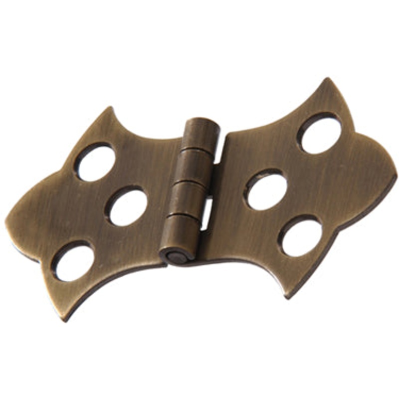 Decorative hinge made of solid brass with an Antique Brass finish.