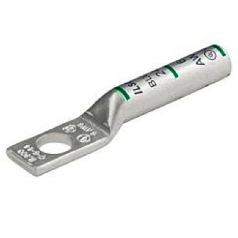 Surecrimp Copper Compression Lug, Conductor Size 1, 1 Hole, 5/16in Bolt Size, Long Barrel, No Sight Window, Tin Plated, UL, CSAColor: GreenMaterial: CopperMounting: 1-HoleVolts AC: 600Standards: California Proposition 65Stud Size: 5/16 inAllowable Gauge Ra