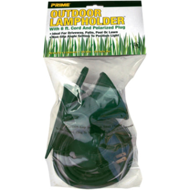 Green floodlight holder is weather resistant. Wall mount and ground stake included. Ideal for driveway, patio, lawn, or pool. Non-slip angle setting to position light. 6 cord, 18/2 SJTW 2 conductor. 120 volts, 150 watts maximum bulb (not included).