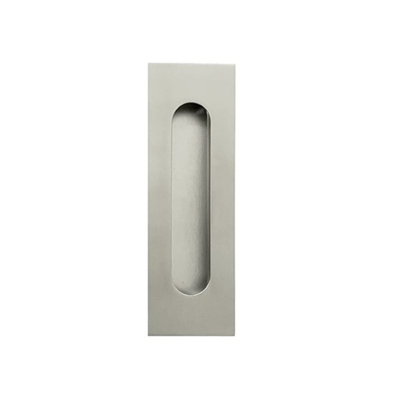 Ultra Modern, 150mm x 50mm rectangular flush handle style with oval finger gripMade of Grade 304 stainless steel with a brushed stainless steel finishHidden screw mountRectangle shape around outside, oval shape around finger gripSuitable for any thickness