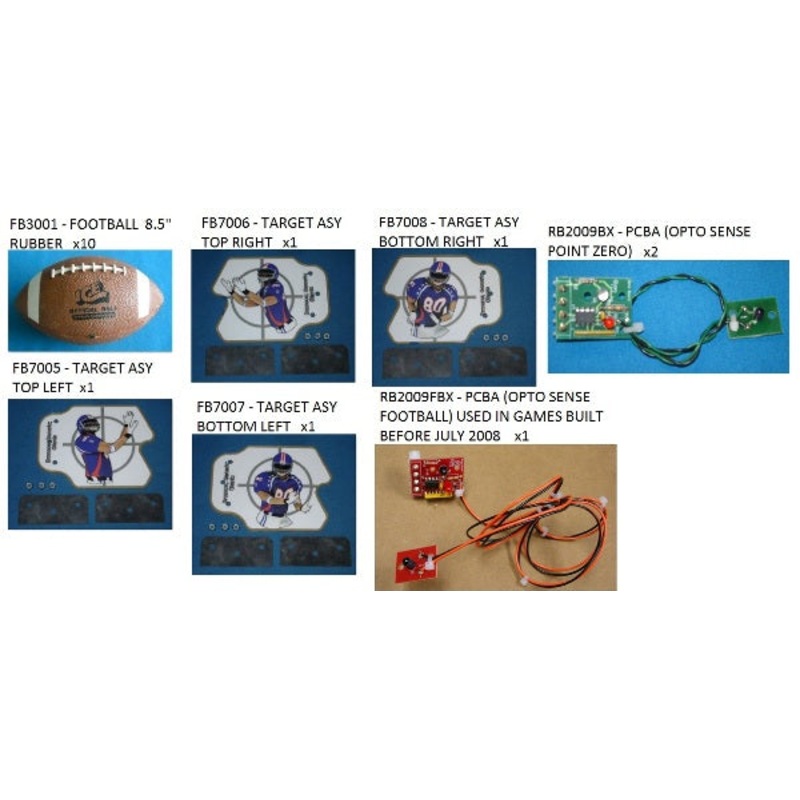 Buy as a kit and save versus ordering components individually! Kit includes:QtySKUTitle10FB3001LFOOTBALL 8.5" (PU LEATHER)1FB7107XASY (TARGET TOP LEFT)1FB7108XASY (TARGET TOP RIGHT)1FB7105XASY (TARGET BOTTOM LEFT)1FB7106XASY (TARGET BOTTOM RIGHT)2RB2009BXP
