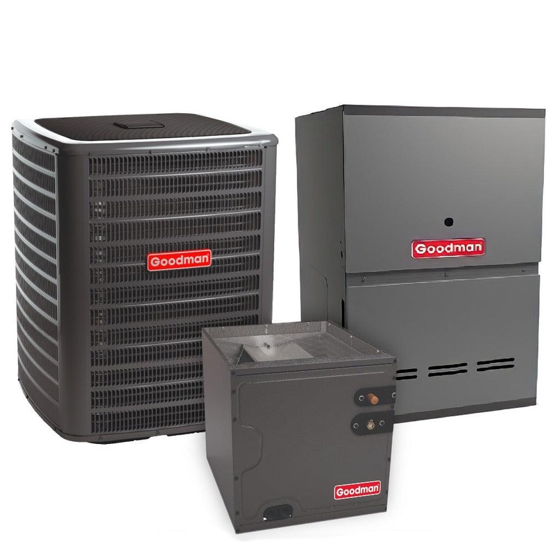 2 Ton 14.3 SEER2 60,000 BTU 80% AFUE Goodman Downflow Air Conditioner System with Models GLXS4BA2410, CAPTA2422A3, GD9S800603AN