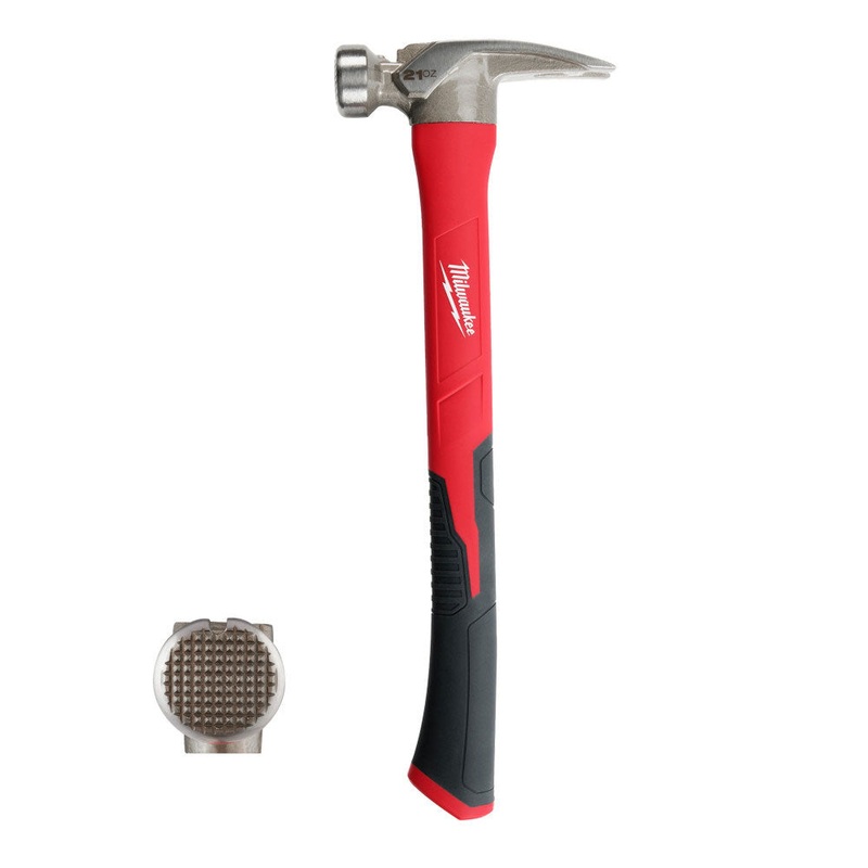 The Milwaukee 21oz Milled Face Poly/Fiberglass Hammer is designed to have the most durable fiberglass handle for added durability on the jobsite. The 21oz milled face hammers reinforced fiberglass handle core provides the highest durability among fiberglas
