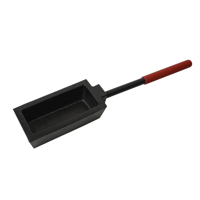 275 T. oz Open Cast Iron Ingot Mold w/ Long HandleA high-quality cast iron mold that is designed with a slight taper for easy ingot removal, plus a handle for easy use while casting gold, copper, brass, silver, aluminum, and other metals. Please note that