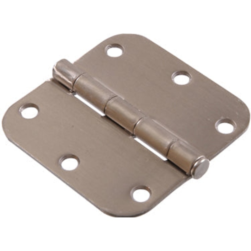 1/4 residential door hinge. Round corner. Full mortise. Removable pin. Satin Nickel finish. Size 3-1/2.