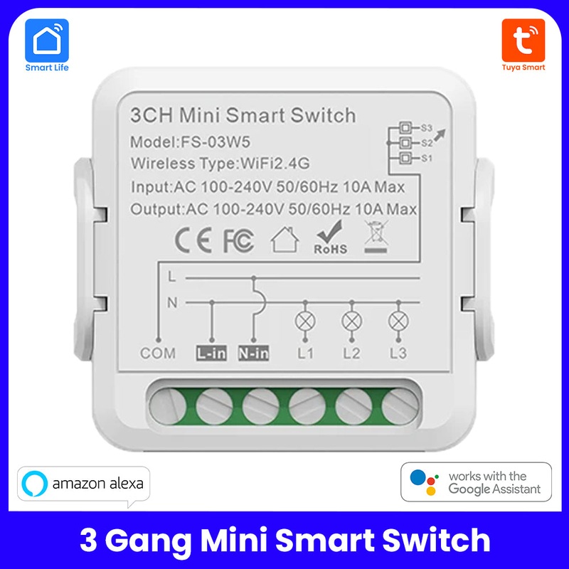 Upgrade your home with our 3 Gang mini Smart Wifi Module. With the Smart Life App, easily control up to 3 devices from anywhere and enhance your smart home experience. Compatible with Alexa and Google Home for hands-free convenience. Make your home smarter