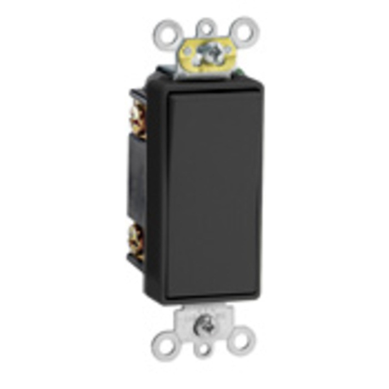 15 Amp, 120/277 Volt, Decora Plus Rocker 3-way Ac Quiet Switch, Commercial Grade, Self Grounding, Back & Side Wired, - EbonyType: 3-WayVolts AC: 120Volts AC: 277Color: BlackAmps: 15Type: Self-Grounding