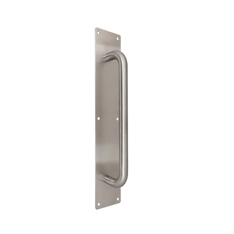 400mm long rectangular door push/pull door plate handleMade of Grade 304 stainless steel with brushed stainless steel finish19mm handle attached the plate for easy push and pullMounting screws includedAlso available in matt black and antique brass finishes