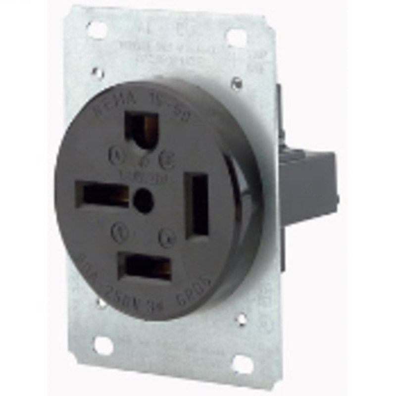 50 Amp, 250 Volt, NEMA 15-50R, 3P, 4W, Flush Mount Receptacle, Straight Blade, Industrial Grade, Grounding, 3-Phase, Side Wired, Steel Strap - Black, 2.38" DiameterMounting: FlushColor: BlackVolts AC: 240Amps: 50NEMA Configuration: 15-50R