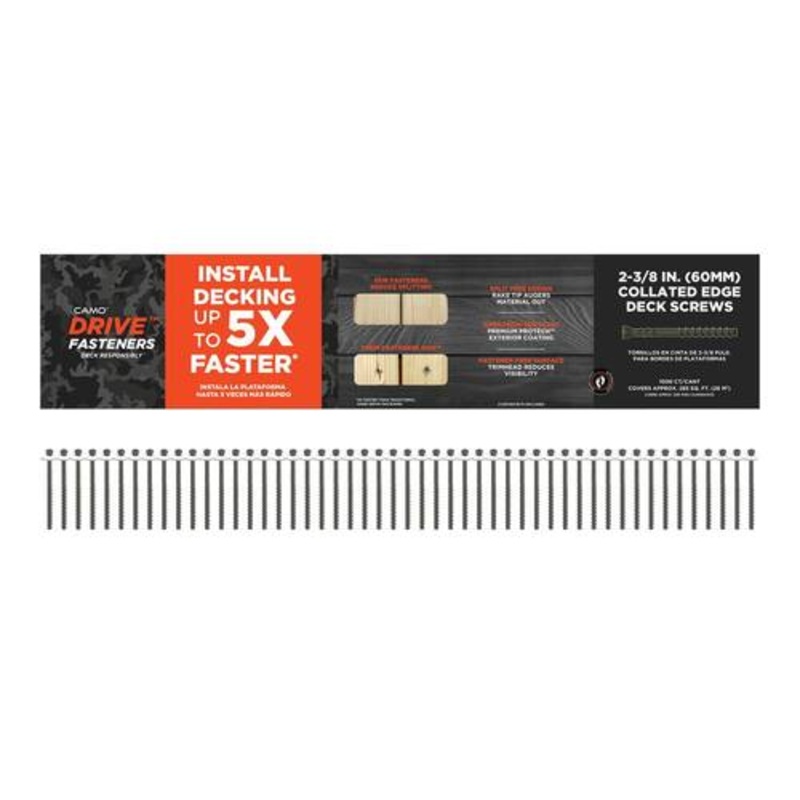- Edge hidden deck screws, collated for use with the CAMO DRIVE system