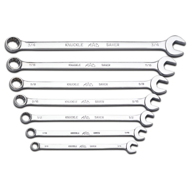 7-PC. SAE Long Knuckle Saver Combination Wrench Set – 12-PT.