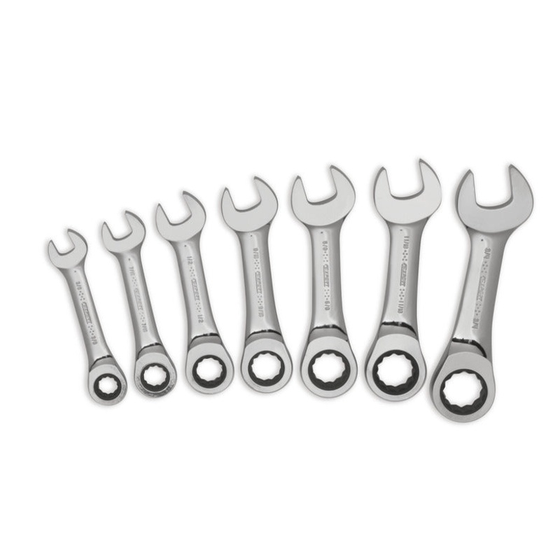 7-PC. SAE Stubby Ratcheting Wrench Set – 12-PT.
