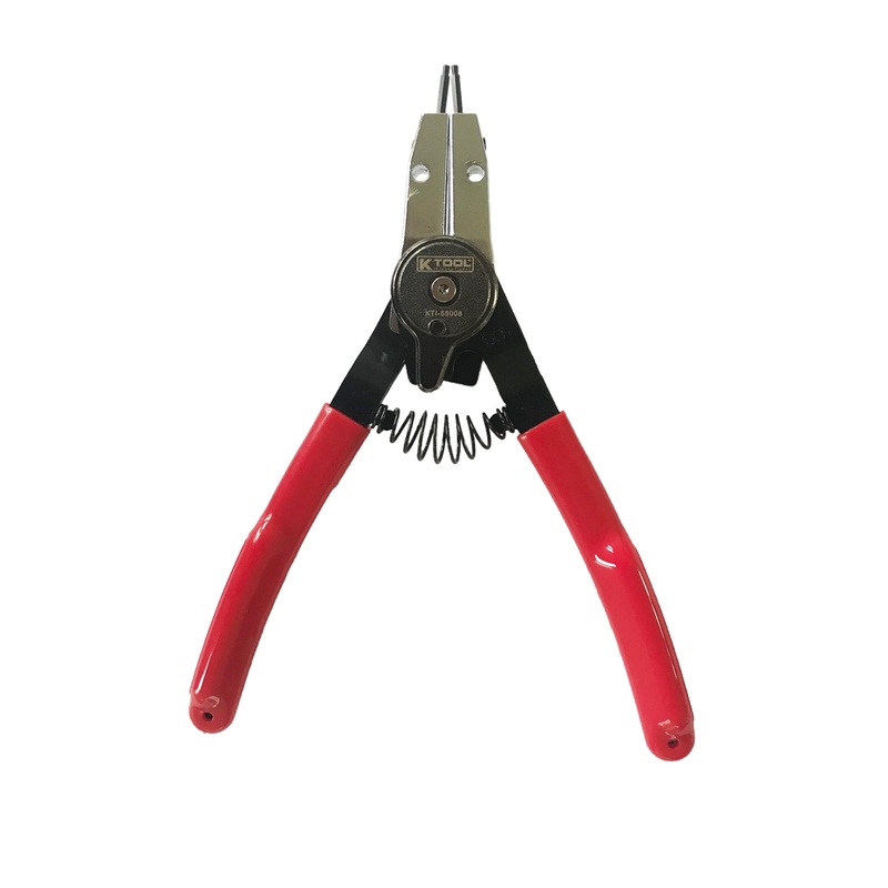 Features and Benefits:8" internal and external snap ring pliersOperates both internal and external ringsUnique jaw design to easily remove for straight and 90 degree angle tipsAlloy steel and PVC grip with storage for tipsIncludes 3 pairs of tips and hex k