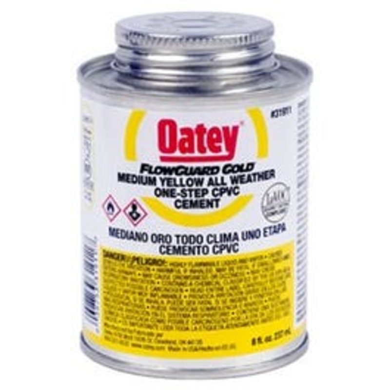 Flowguard Gold, 8 OZ, CPVC Yellow Cement, 1 Step, For Cold Water Systems & Hot Water Systems Up To 180 Degree Fahrenheit, Copper Tube Size, CPVC Hot & Cold Potable Water Pipe & Fittings Up To 2" Diameter, Interference Fit Only, May Be Used Without Primer W