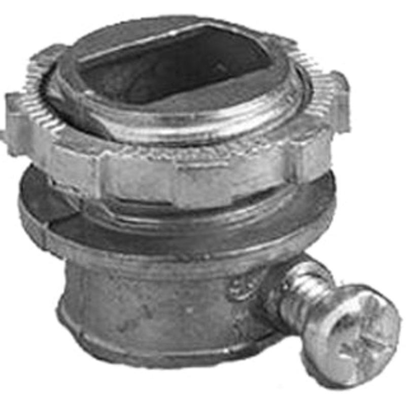 For flexible metal conduit and armored cable. Die-cast zinc. Size 3/8 (1/2 knockout). Polybagged.