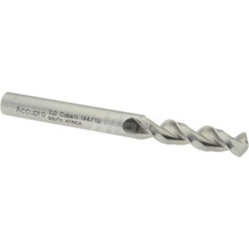 Accupro 0.2756″ 130 Parabolic Flute Cobalt Screw Machine Drill Bit Bright Finish, Right Hand Cut, 1.339″ Flute Length, 2.913″ OAL, Split Point, Straight Shank