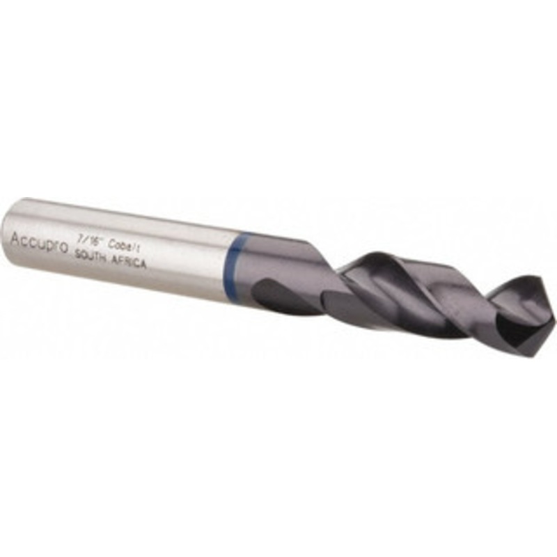 Accupro 7/16" 120 Spiral Flute Cobalt Screw Machine Drill Bit TiAlN Finish, Right Hand Cut, 47mm Flute Length, 95mm OAL, Faceted Point, Straight ShankManufacturer Part #: 1BS1111-ACS/N: 05494315UNSPSC: 23241635UPC: 000054943155(Minimum Order Quantity=1, Pa