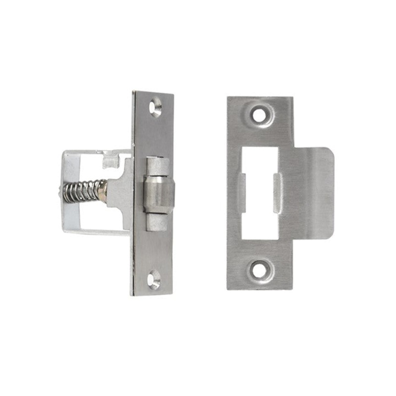 Heavy duty tongue roller latch with a brushed stainless steel finishSuitable for either left or right handed doorIdeal fits the doors has the pull handlesDesigned to hold door shut and open without the need to turn the handleAdjustable tongue to suits gaps