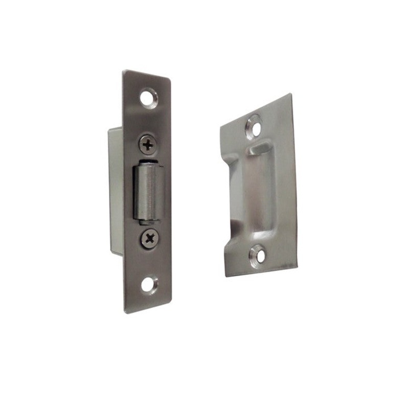 304 grade stainless steel construction with a brushed stainless steel finishSuitable for either left or right handed doorIdeal fits the doors has the pull handlesDesigned to hold door shut and open without the need of install a handle operate latchRetracta
