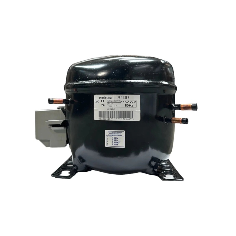 FF11.5BK1 Embraco Refrigeration Compressor is a direct replacement for Tecumseh AE1411D compressorReplacement compressors for food service equipment, vending machines, bottle coolers, ice machines and other refrigeration equipmentCompressor Voltage 115Bran