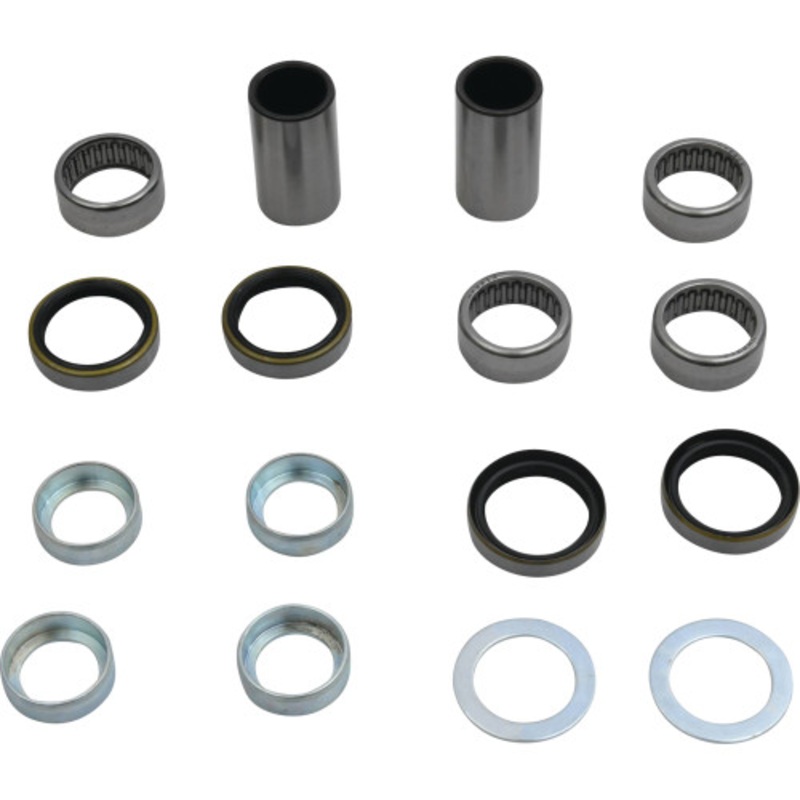 All Balls Racing Swing Arm Bearing Kit Restores smooth swing arm operation Contains every component to rebuild the swing arm Made from extremely tough SCM415/42 bearing steel for excellent wear resistance Value priced compared to OEM replacements Backed by