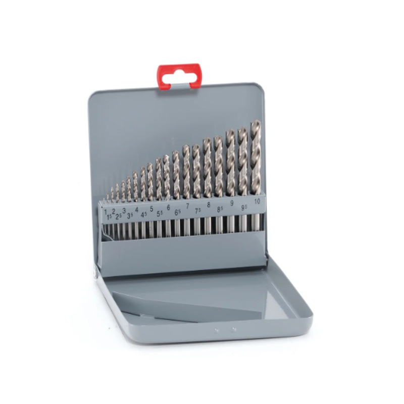 19Pc HSS-ECo Cobalt KM19 Jobber drill set in metal cassetteRange of application5% cobalt-alloyed jobber drills with high heat-resistance for drilling steels with tensile strength over 800N/mm, especially suitable for high alloyed steels, bearing-steels, ho