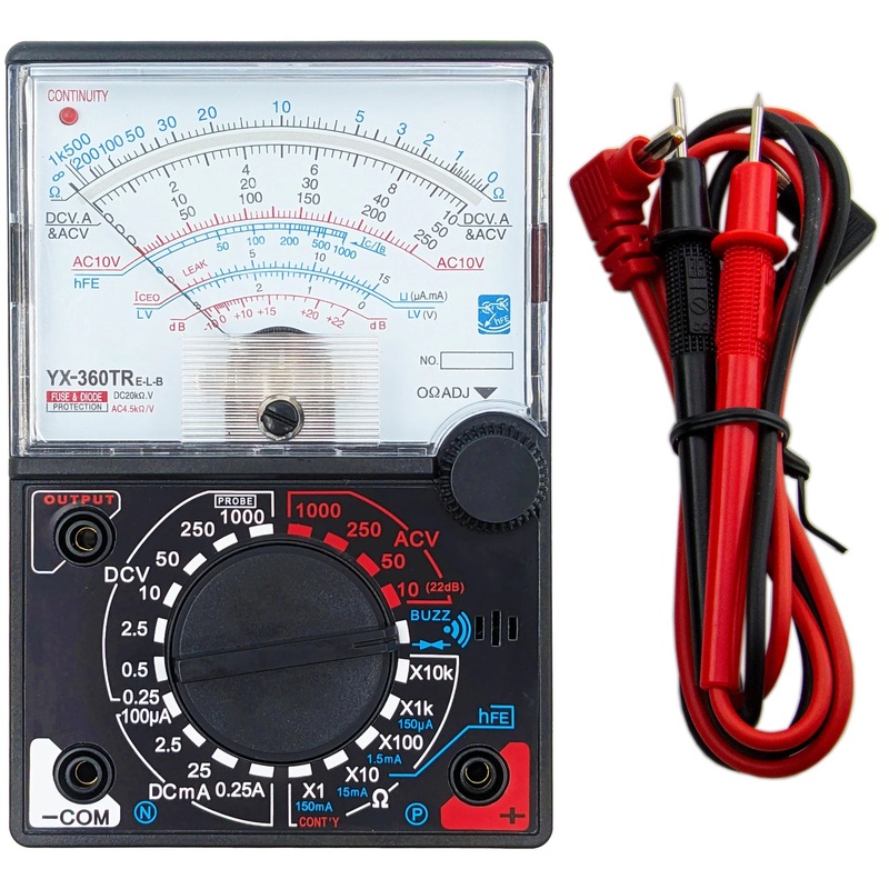 Analog Multimeter with LED Indicator & Buzzer for Continuity Test – Includes Test Leads (YX-360TRE-L-B)