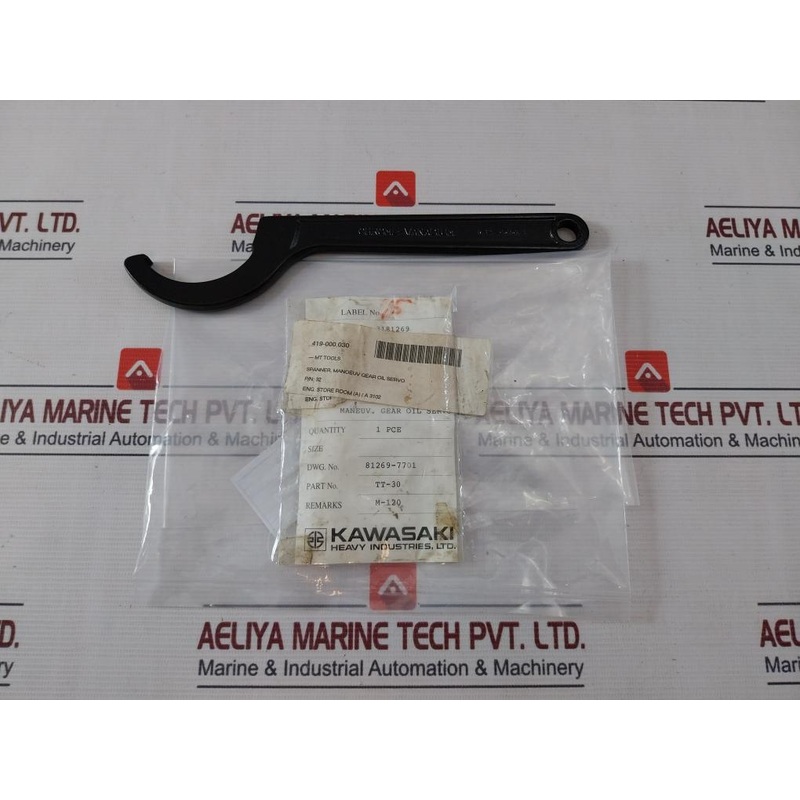 Asahi 70-75 Hanging Hook SpannerAsahiKawasaki Heavy Industries, Ltd.Ash ToolsChrome-vanadiumDescription: Spanner For Maneuv. Gear Oil ServoName Of Equipment: Special Tools70-75K-10R-12Part No: Tt-30Item No: Shi H.No.1207Dwg.No.: 81269-7701Remarks: M-120-mt