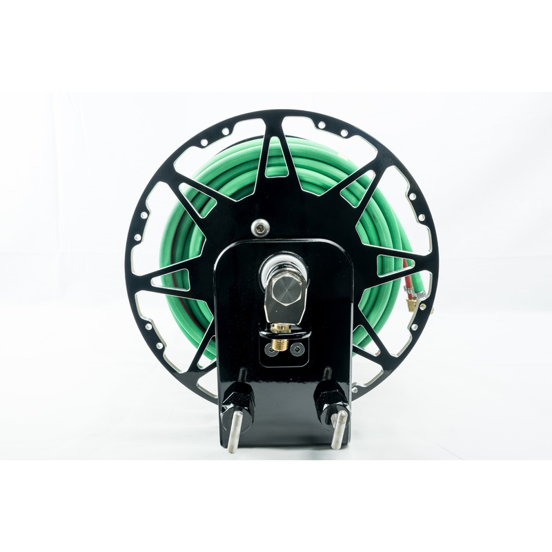 Badass Reels Welding Cable Reel. Made In USA.No need to disconnect welding cables, always live design.Heavy duty slip ring, rebuildable design.Easy to service.Positive locking mechanism locks reel when not in use.No bearings to arc out like other designs.F