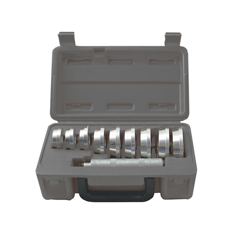 Bearing and Seal Installer Master SetFeatures and Benefits: Set includes 9 drivers Helps reduce damage to both race and axle housing Shipping wt. 3 lbs. Make it easier to insert bearings with this master set. This master set includes nine discs sizes to fi