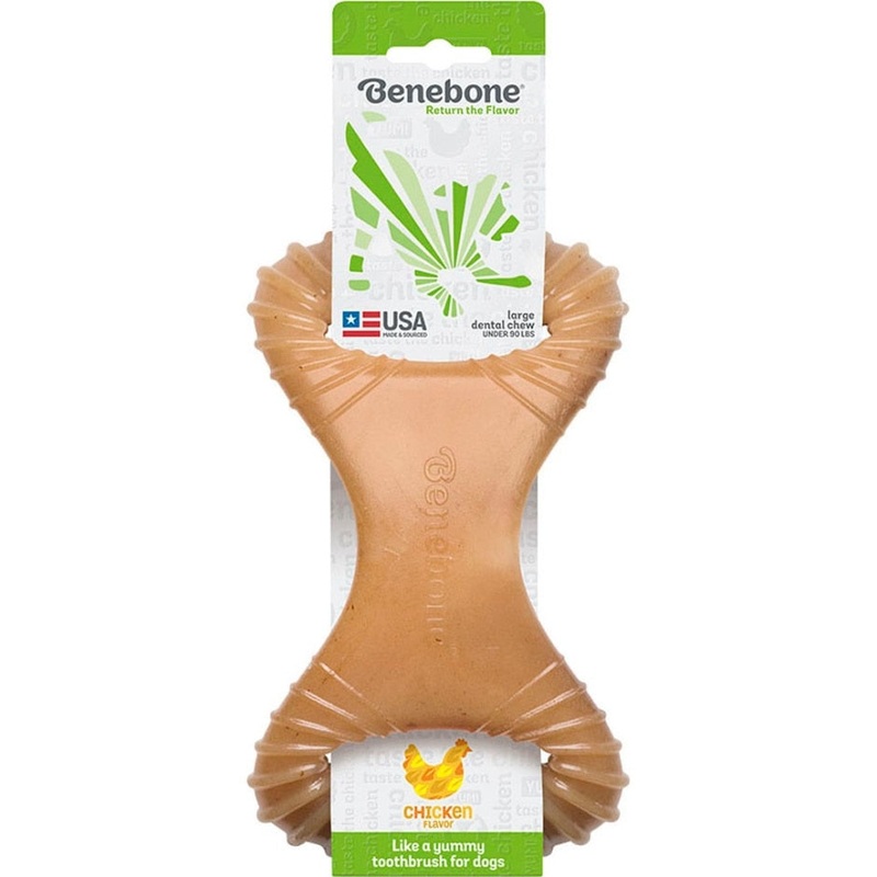 Not only is the Dental Chew a durable flavor-packed chew, it also makes for a great tug toy. What could be better than a chicken-flavored toothbrush?