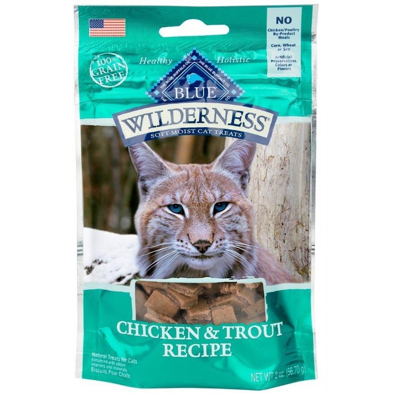 BLUE Wilderness Chicken & Trout soft-moist cat treats are the perfect way to cater to your felines inner carnivore. Loaded with real chicken and trout, these soft-moist treats have the flavor your cat craves. BLUE Wilderness cat treats are: