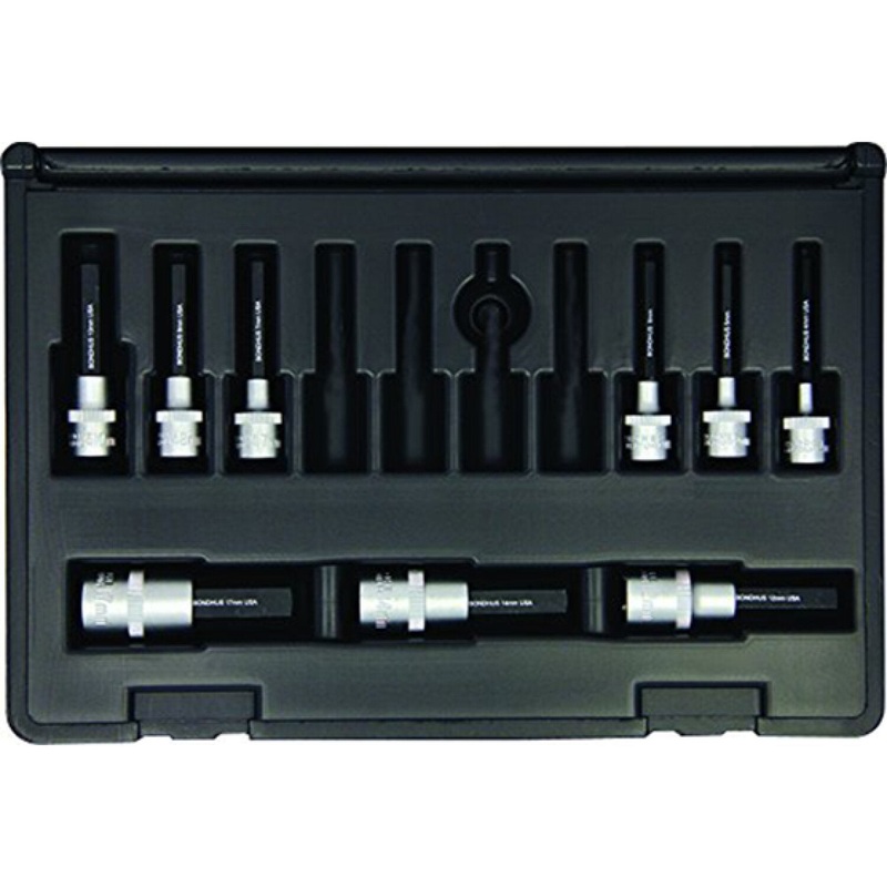 General InformationBrandBondhusPart Number30298Product TypeProHold Socket Hex Bits SetNumber of Pieces9PackagingBulkCountry of OriginUnited StatesUPC037231302986California ResidentsProposition 65 WarningPhysical CharacteristicsFinishProGuard FinishLength50mmWeight0.89 kg1.97 lbDetailsWrench Type Bit SocketTypeHexSize4, 5, 6, 7, 8, 10, 12, 14, 17mmFeaturesBit fits any standard six-point socket