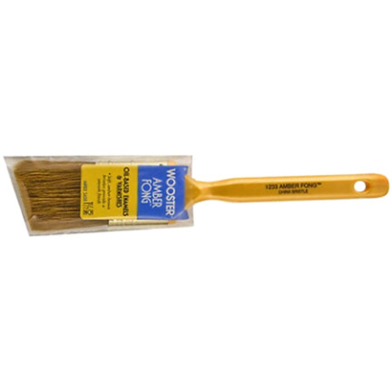 Angled sash brush for all types of paint. Brown China bristle. Chisel trim. Plastic handle with gold finished ferrule.