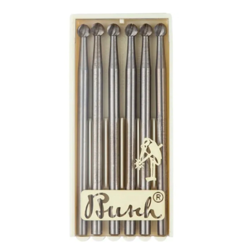 Busch Tungsten Vanadium Steel Round Burs 3/32" Shank (Pack of 6)Enhance your precision work with Busch Round Burs, expertly engineered from premium tungsten vanadium steel for superior performance. Designed specifically for stone setting, deburring, and cl