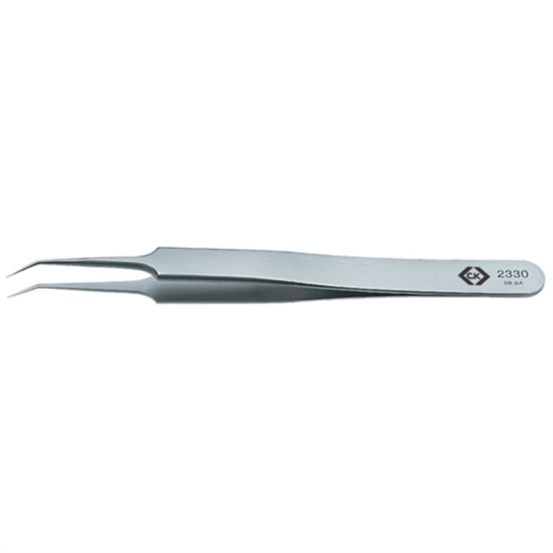 Precision Tweezer 110mm~ High grade, stainless steel bow acid & corrosion resistant~ Anti-magnetic~ Polished with matt surface~ Superfine tips, angled at 60~ Type: 5B.SA~ Length: 110 mmTechnical Specification:CE Certified: NoConflict Materials Content : No