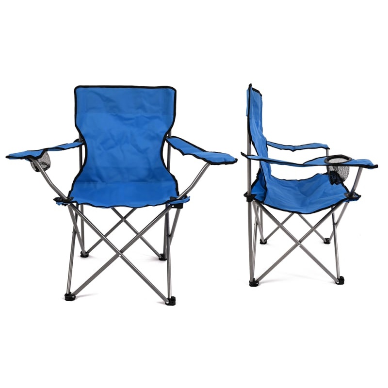 The captains chair has a convenient folding design, ideal for taking camping, festivals or picnics. With a bright blue colouring, this chair features a handy cup holder.