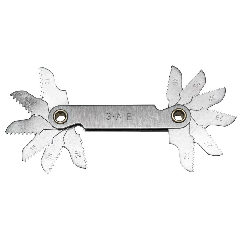 Fractional pitch gauge for measuring pitch for fractional threads per inchRange 12-40 threads per inchMade from durable steel