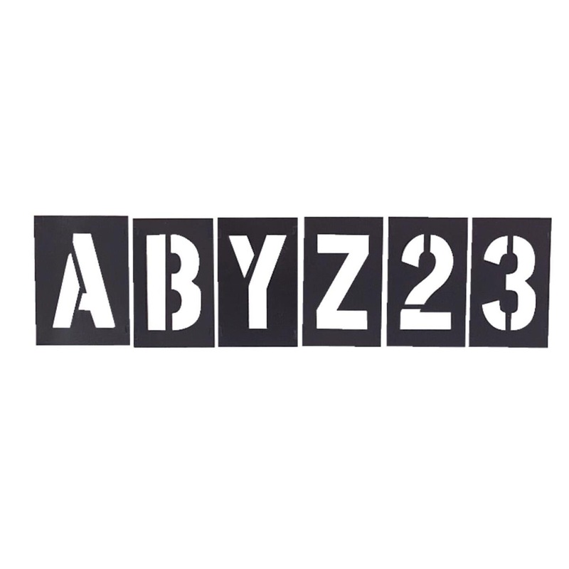 Reusable, interlocking and interchangeable. For use with paint, markers, and pencils. Includes 1 each A thru Z plus extra A, E, R, and S, numerals 0-9, dollar sign, ampersand (&), period, dash, and 2 spacers.