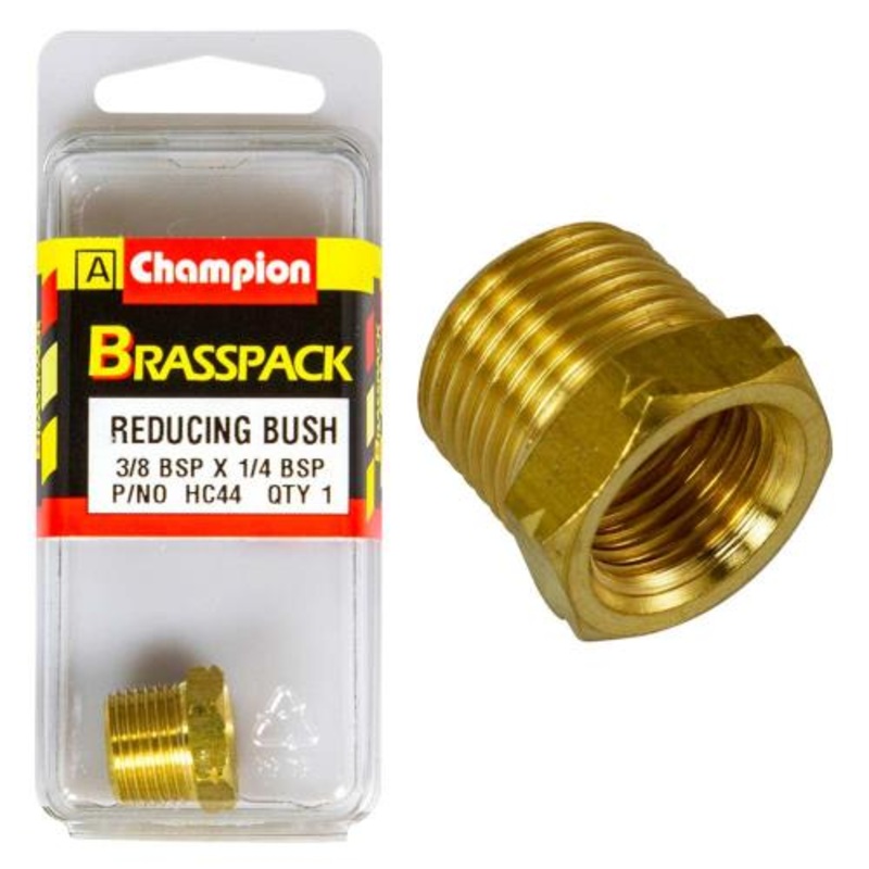 HC44 | Champion Brass 3/8in - 1/4in Hex Reducing BushDescriptionReducing3/8 to 1/4 inchPack Size: 1