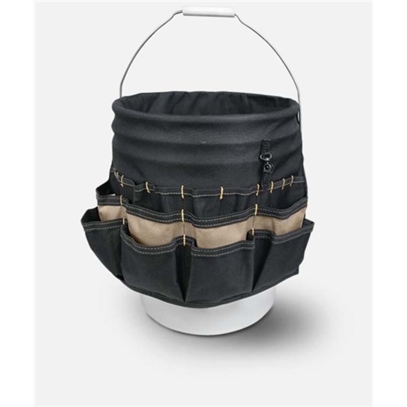 This contractor grade bucket organizer, with 14 double-row inner and 34 triple-row outer pockets, includes a tape loop, cordless drill pocket and securing strap.Multiple pockets inside and outside for optimal organization of a wide range of tools and acces