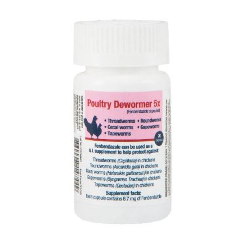 POULTRY DEWORMER 5XSupplement that can be used to protect against intestinal parasites. Each capsule is intended to treat one 4-7 lb bird. (Multiple capsules may be needed to treat a bird based on weight).TREATS THE FOLLOWING:ThreadwormsRoundwormsCecal wor