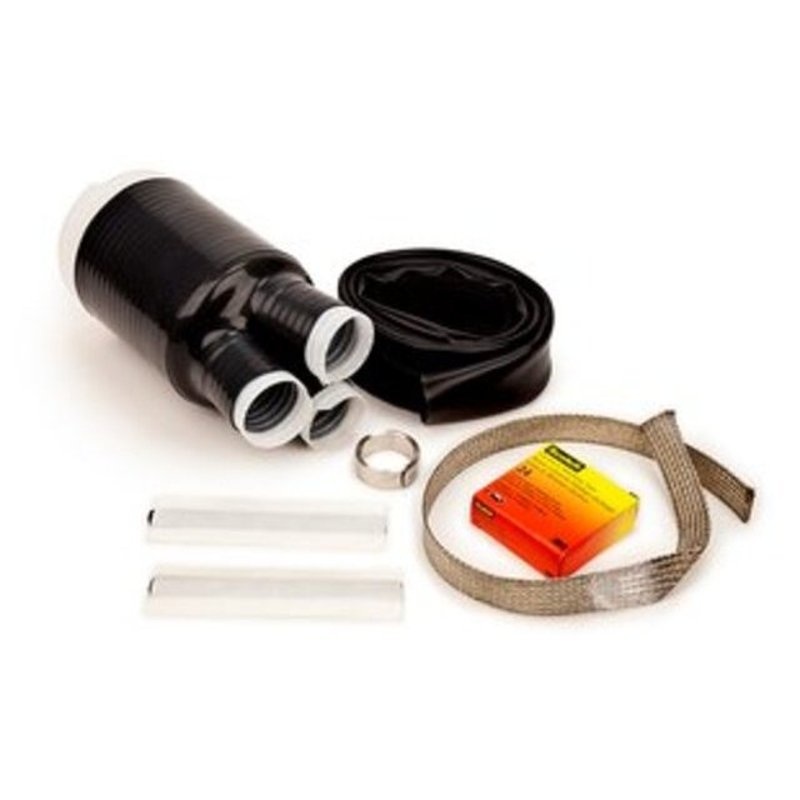 Cold Shrink Three Conductor Breakout Kit, Cable Insulation O.D. Range: 0.50-0.70″, Includes: (1) Cold Shrink Silicone Rubber Breakout Boot, (3) 4′ Silicone Rubber Phase Rejacketing Sleeve (RJS) Assemblies, (1) Constant Force Spring for Armored Cable Only, (1) Long Tail Tinned Copper Ground Braid With Solder Block for Armored Cable Only, (3) Strips Scotch Mastic Strip 2230, (1) Roll Scotch Super 33+ Vinyl Electrical Tape, 3/4″, (1) Roll, Scotch Electrical Shielding Tape 24 for Armored Cable only, Instruction Sheet