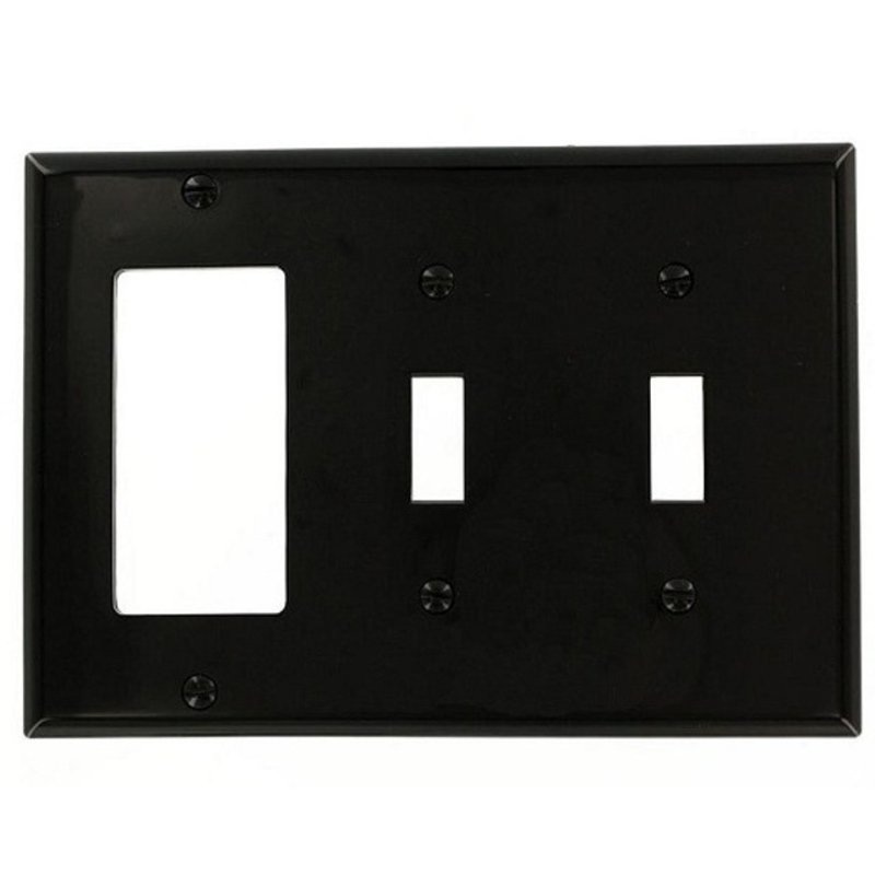 3-Gang, 2-Toggle 1-Decora/GFCI Device Combination Wallplate, Standard Size, Thermoplastic Nylon, Device Mount – Black.