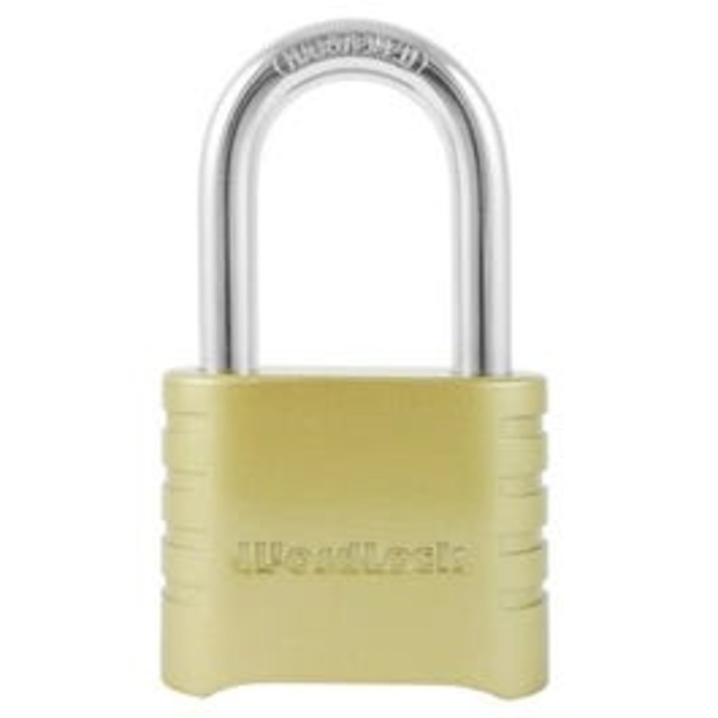 Wordlock, brass utility lock, with 1.5" brass shackle, maximum security with ease of use, creates up to 10,000 word & letter combinations on a lock that uses only hardened steel & brass, virtually indestructible from weather, strain or tampering, hardened