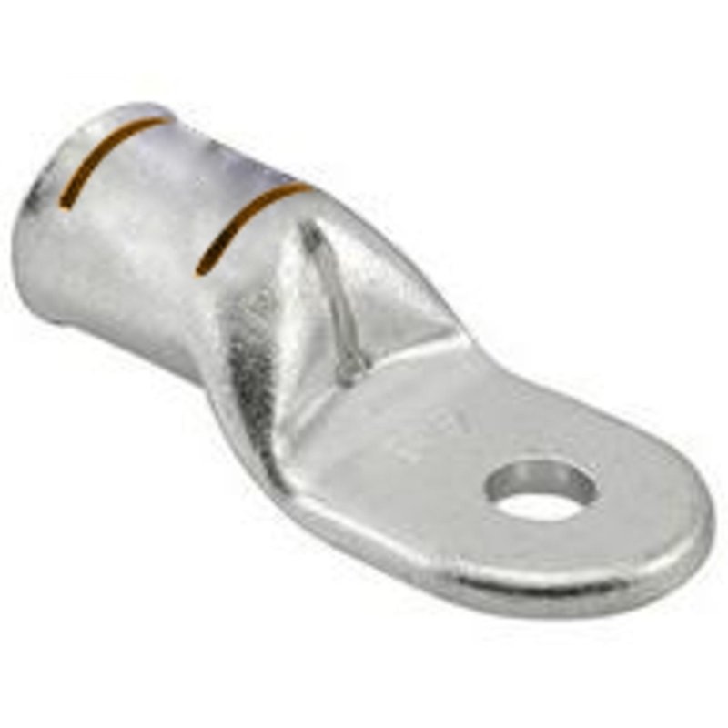 Copper Compression Lug, Conductor Size 2, 1 Hole, 1/2in Bolt Size, Standard Barrel, Sight Window, Tin Plated, UL, CSAColor: BrownMaterial: CopperMounting: 1-HoleVolts AC: 600Standards: California Proposition 65Allowable Gauge Range: 2Stud Size: 1/2 in