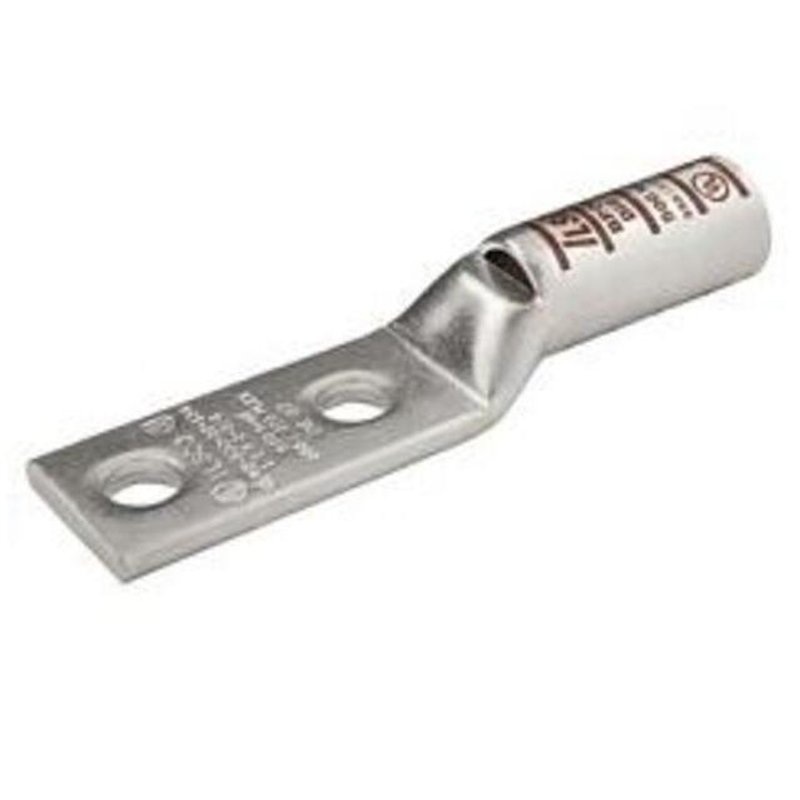 Compression Lug, 2 AWG, 2 Hole, 1/4″ Stud, 5/8 Inch Hole Spacing, Long Barrel, Sight Window, Copper/Tin Plated
